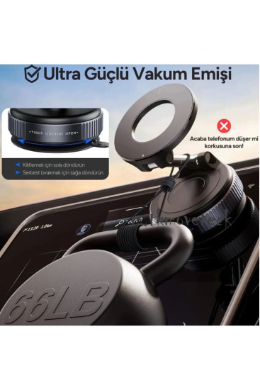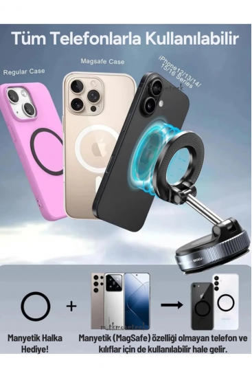 360 Dönebilen Ayarlanabilir Araç Içi Tutucu Kullanılabilen Vakumlu K007 Magsafe Telefon Tutucu