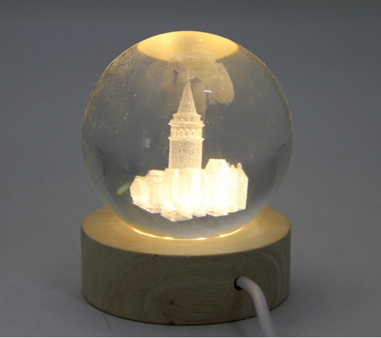 3d Kristal Cam Küre Ahşap Soketli İstanbul Temalı Led Lamba Aalk2575