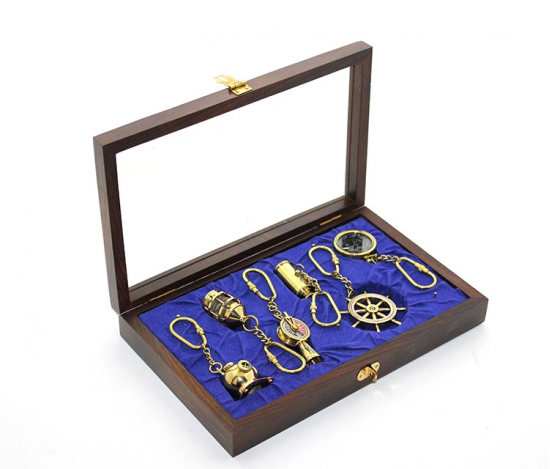 Ahşap Kutulu Pirinç 6'lı Anahtarlık Seti 2668