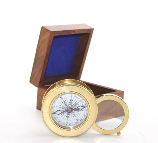 Ahşap Kutulu Pirinç Mercekli Pusula 16040