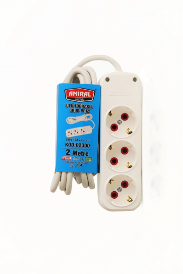 Amiral 3' Lü Topraklı 2 Metre Kablolu Grup Priz