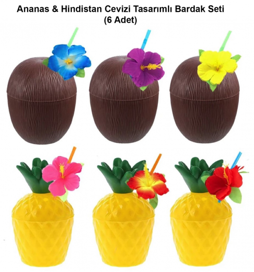 Etiketler: Ananas Hindistan Cevizi Tasarımlı Pipetli Bardak Seti (6 Adet)