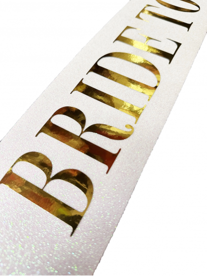 Beyaz Üzeri Altın Büyük Bride To Be Yazılı Simli Işıltılı Kuşak Kemer 10 Cm Genişlik