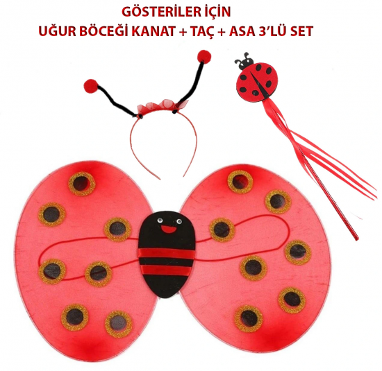 Çocuk Gösteri İçin Uğur Böceği Kanat + Taç + Asa 339lü Kostüm Seti