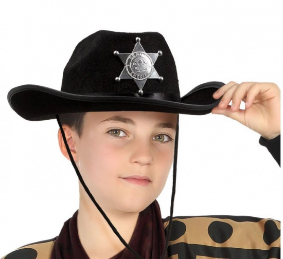 Çocuk Kovboy Şapkası Sheriff Şapkası Siyah Renk