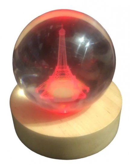 Dekoratif Eyfel Kulesi Tasarımlı Ahşap Altlıklı Işıklı Cam Küre Cam:6cm Ahşap:2cm