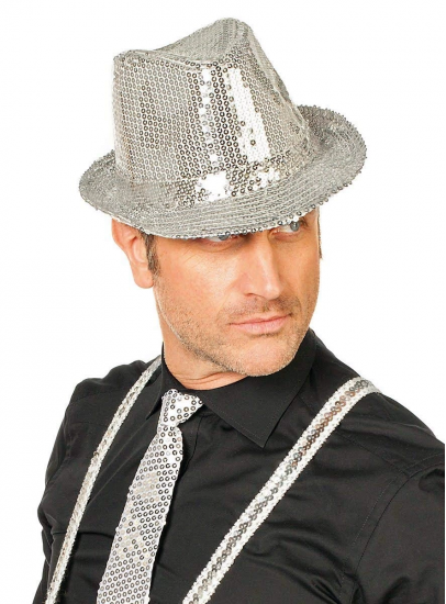 Disko Gümüş Payetli Fötr Şapka Yetişkin Boy