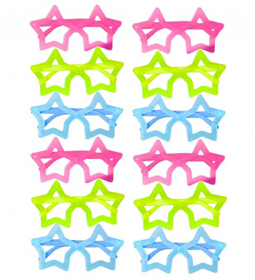 Fosforlu Yıldız Model Glow Parti Gözlüğü Karanlıkta Yanan Gözlükler 12 Adet