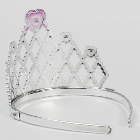 Fuşya Kalpli Gümüş Renk Kraliçe Tacı Prenses Tacı