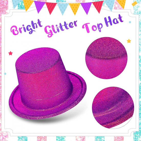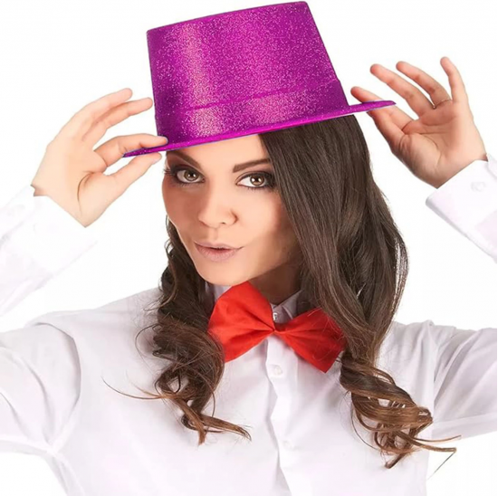 Fuşya Pembe Renk Parıltılı Simli Fötr Silindir Parti Şapkası