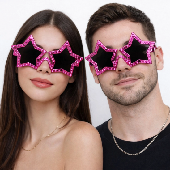 Fuşya Renk Disko Yıldızı Retro Parti Gözlüğü 16x7 Cm