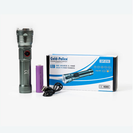 Gold Police Gp-216 Şarjlı El Feneri Güçlü Tg Led 2000 Lümen