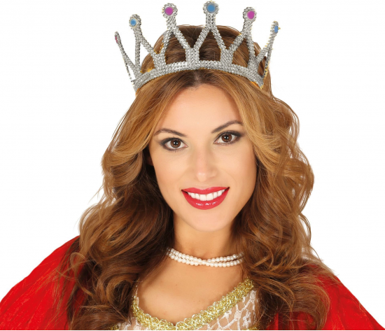 Gümüş Renk Çocuk Ve Yetişkin Uyumlu Kraliçe Tacı Prenses Tacı 8x25 Cm