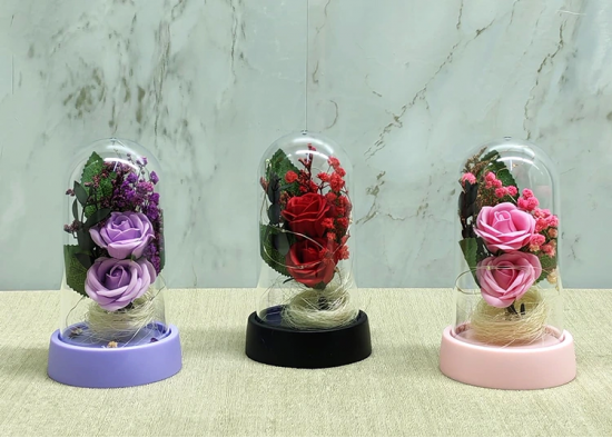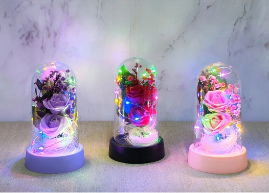 Işıklı Müzikli Romantik Fanus Tekli Gül Alk5007