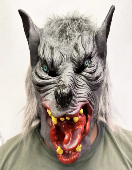 Etiketler: Kafaya Tam Geçmeli Lateks Dil Çıkaran Mavi Gözlü Kurt Maskesi