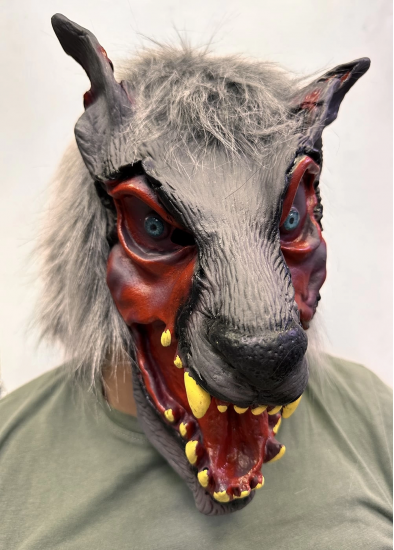 Kafaya Tam Geçmeli Lateks Dişli Ağzı Açık Kurt Maskesi