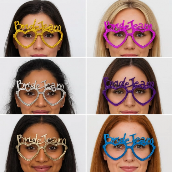 Etiketler: Kalpli Bride Team Gözlük Seti 6 Renk - Kına Düğün Partileri İçin