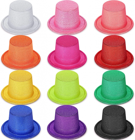 Karışık Renk Simli Silindir Parti Şapkaları (12 Adet)