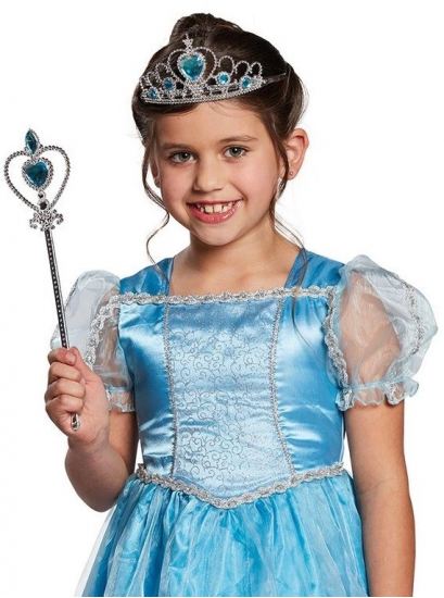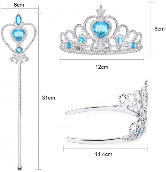 Karlar Ülkesi Elsa Mavi Kalpli Taç Ve Mavi Asa Seti Çocuk Boy
