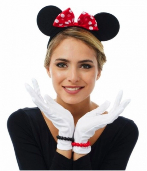 Kırmızı Fiyonklu Minnie Mouse Tacı Ve Beyaz Eldiven Seti