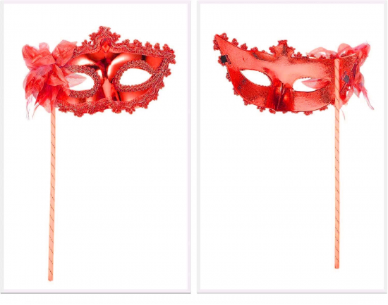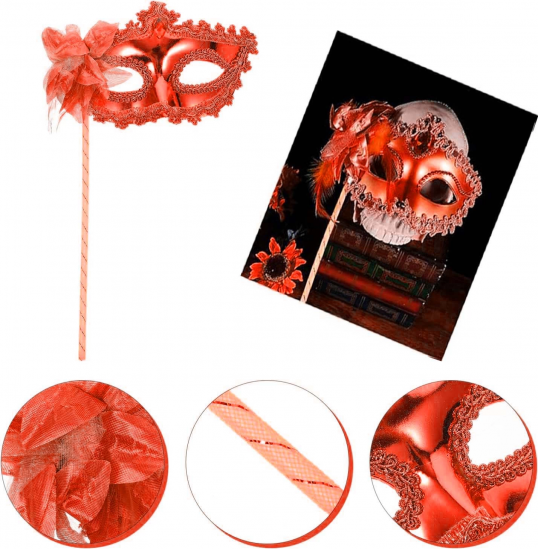 Kırmızı Işıltılı Tutmalı Fotoğraf Çekimi Maskesi 18x29 Cm