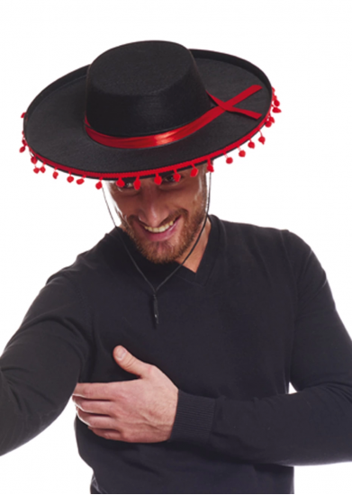 Kırmızı Ponponlu Siyah Renk Yetişkin İspanyol Şapkası
