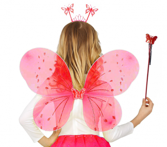 Kırmızı Renk Çocuk Kelebek Kanadı Tacı Ve Asa Seti 50 Cm