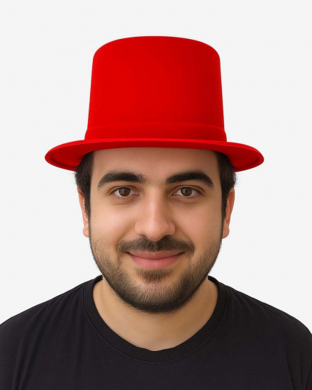 Kırmızı Renk Plastik Nubuk Kadife Flok Kaplama Fötr Şapka 11 Cm
