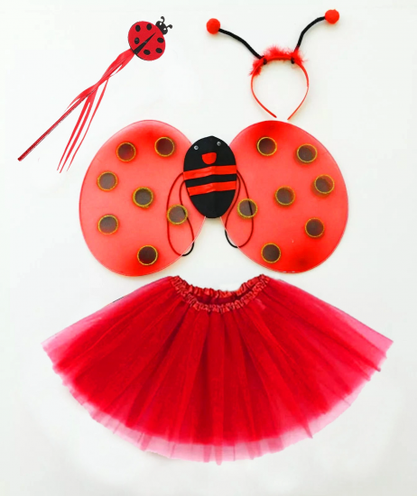 Kırmızı Uğur Böceği Ateş Böceği Kostüm Seti - (tütü, Kanat, Taç, Asa)