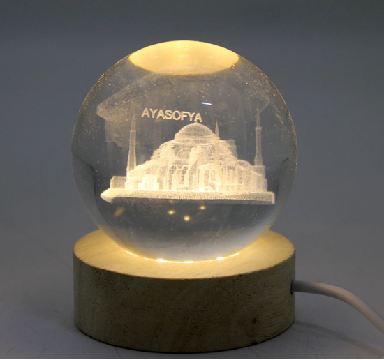 3d Kristal Cam Küre Ahşap Soketli İstanbul Temalı Led Lamba Alk2573