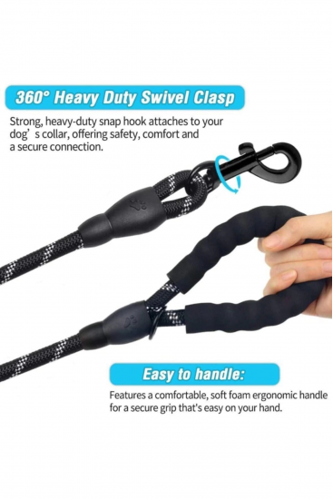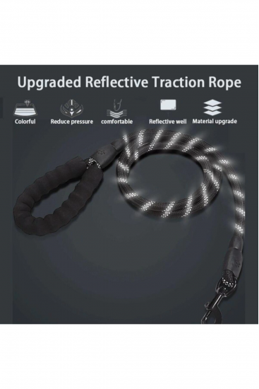 Köpekler İçin Gezdirme Tasması Reflektörlü 130 Cm Halat Orta Ve Büyük Boy Köpekler İçin Siyah