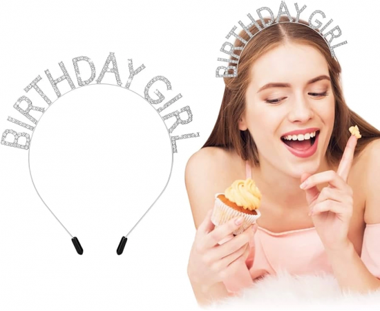 Kristal Taşlı Gümüş Birthday Girl Yazılı Doğum Günü Parti Tacı 19x11 Cm