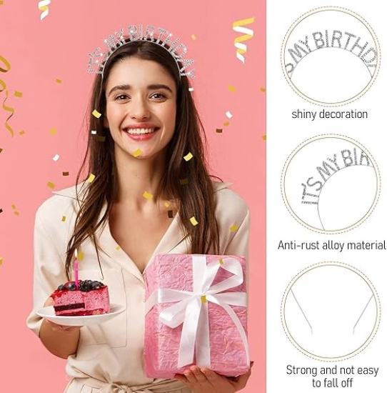 Kristal Taşlı Gümüş Renk İt39s My Birthday Yazılı Doğum Günü Parti Tacı 14x16 Cm