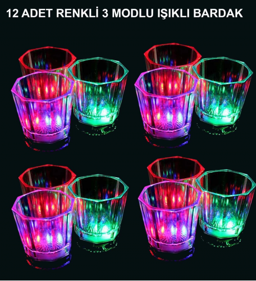 Led Işıklı Eğlence Bardakları - 3 Modlu Renk Değiştiren Bardak 12 Adet
