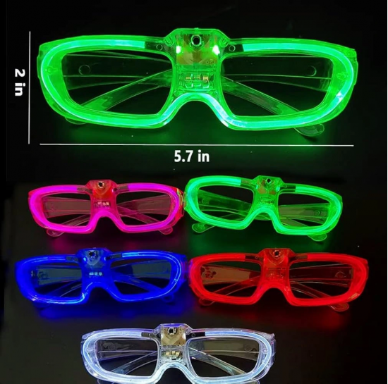 Led Işıklı Glow Pilli Parti Gözlüğü - Glow Efektli 6 Adet 5 Renk