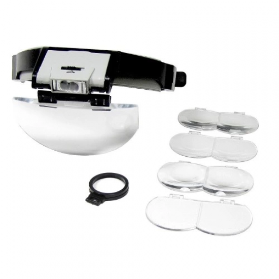 Lens Takmalı 5 Lenslı , Led Lambalı Şapka Tip Büyüteç