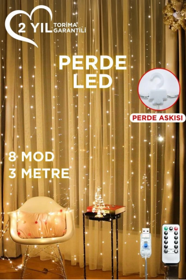 Lw-7 300 Ledli 10 Sarkıt Perde Led Işık, 8 Modlu Uzaktan Kumandalı, 3x3 Metre Peri Telli Led