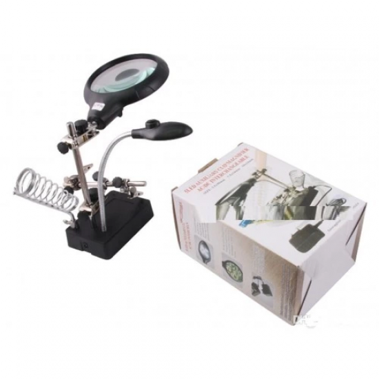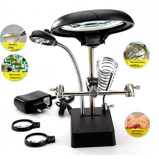 Masa Üstü Mandallı ,2.5x90mm, 7.5x34mm Mercekli ,adaptörlu Işıklı Büyüteç