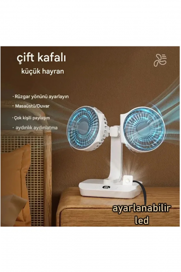 Masaüstü Dijital Ekranlı Çift Fanlı Led Işıklı Soğutucu Fan Ev Ofis Şarjlı Vantilatör