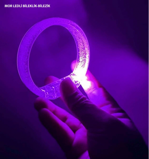 Mor Led Işıklı Baskı Yapılabilen Pilli Bileklik Bilezik 1,5 Cm Genişlik