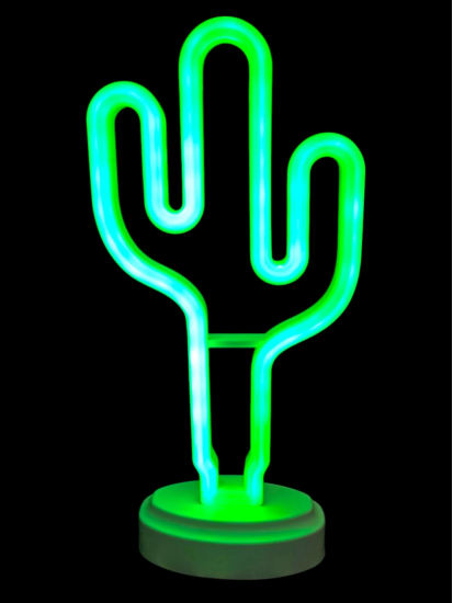 Neon Işıklı Kaktüs Masa Gece Lambası Pil+usb