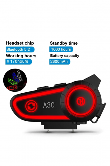 A30 Motosiklet Kask Kulaklık Intercom Işıklı 2 Eşleşme Özellikli