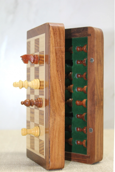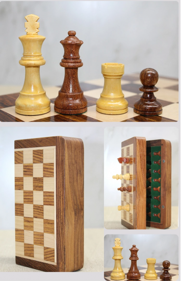 Özel Vernikli Mıknatıs Taşlı Ahşap Katlanabilir Kutulu Satranç Oyunu 17.5 Cm G221