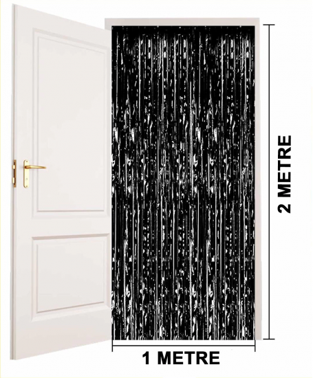 Siyah Renk Ekstra Metalize Parlak Saçaklı Arka Fon Perde İthal A Kalite 1x2 Metre