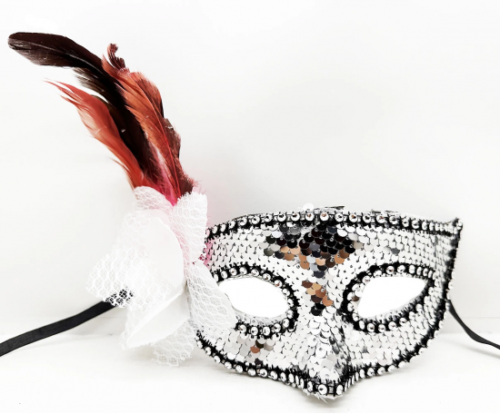 Etiketler: Gümüş Renk Yandan Tüylü Güllü Gümüş Taşlı Pullu Maske 20x22 Cm