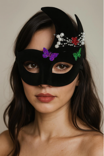 Etiketler: Siyah Renk İncili Taşlı Süet Kaplama Venedik Parti Maskesi 20x22 Cm