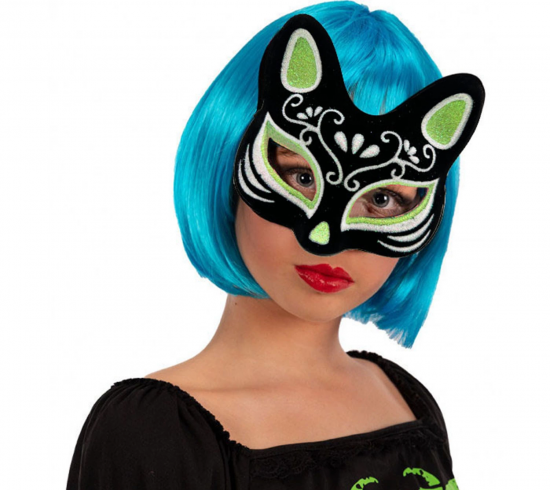 Siyah Renk Süet Kaplama Üzeri Gümüş Yeşil Simli Kedi Maskesi 17x14 Cm