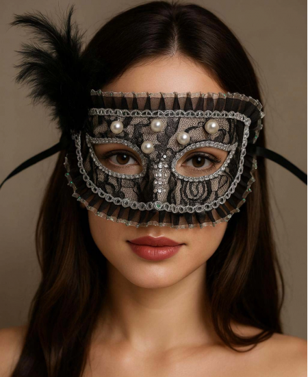 Etiketler: Siyah Renk Yandan Tüylü İnci İşlemeli Taşlı Dantelli Parti Maskesi 17x12 Cm