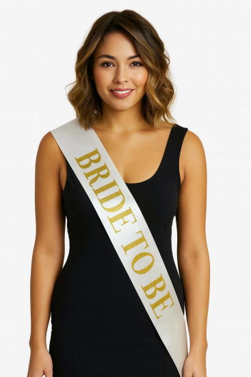 Beyaz Saten Üzerine Kalın Altın Yazılı Bride To Be Kuşağı 10 Cm Genişlik