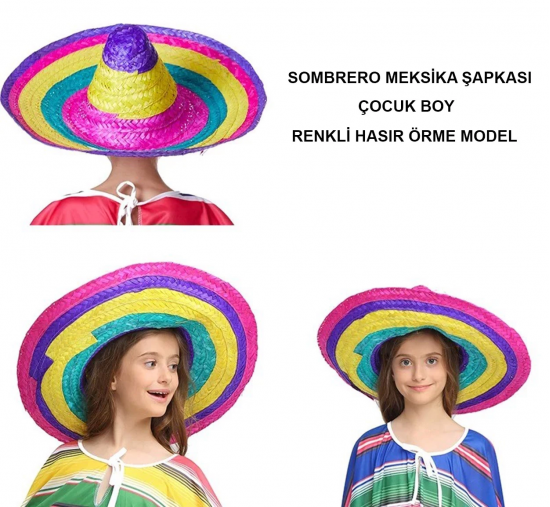 Etiketler: Sombrero Meksika Şapkası Renkli Örme Hasır Çocuk Boy